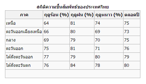 - ความชื้นสูง (เฉลี่ยที่สูงกว่า 80%)