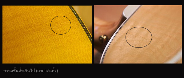 หากความชื้นมาก หรือ น้อยกว่านี้ ล้วนมีผลต่อโทนเสียง รูปทรงและโครงสร้างของกีตาร์