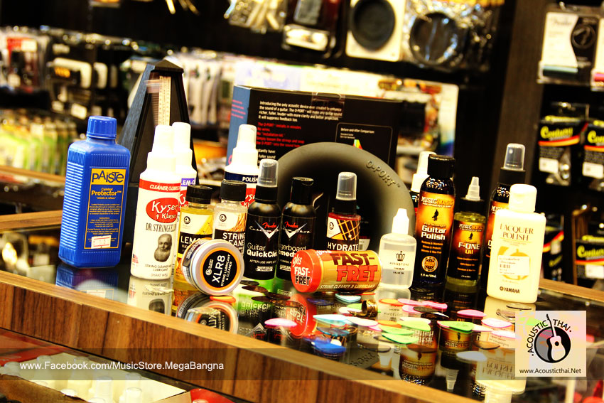 guitar-accessories ต่างๆ เช่น สายกีตาร์, น้ำยาทำความสะอาดกีตาร์ และสายกีตาร์, เคเบิ้ล (Jack Guitar Cable),ฯลฯ