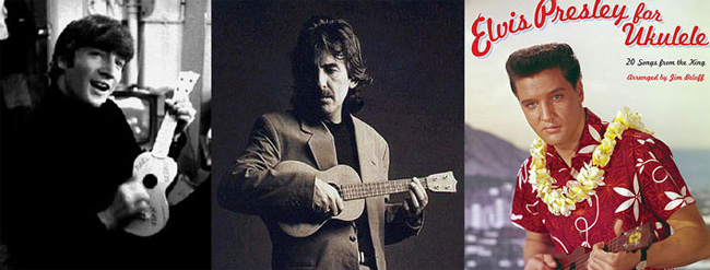 ยังเคยนำเจ้า Ukulele ไปใช้ ยังรวมทั้ง "Elvis Presley" ในช่วงยุค 80's Ukulele เริ่มตกกระแส ความนิยม การนำมาใช้เล่น