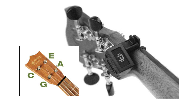 การตั้งสาย ukulele สำหรับขนาด "soprano", "concert" และ "tenor"